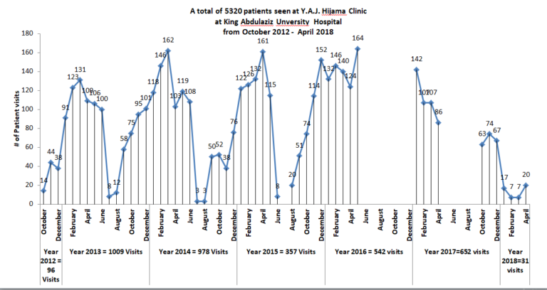 عيادات يوسف عبد اللطيف جميل البحثية والعلاجية للحجامةإحالة 5320 مريض من العيادات التخصصية إلى عيادات الحجامة العلاجية بمستشفى جامعة الملك عبد العزيز ذو القعدة 1433 هـ – رجب 1439 هـ نسبة تحسين جودة حياة المريض و الاستجابة لبعض الأمراض في…